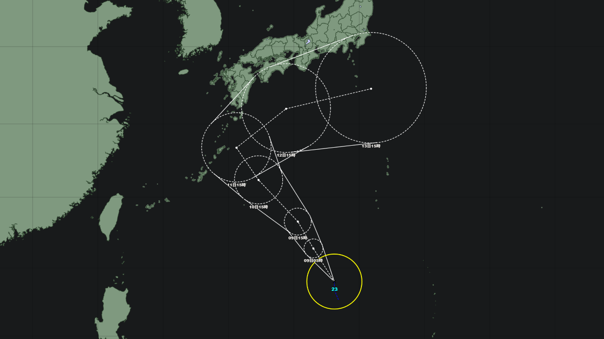 気象庁は10月8日午後4時28分、「8日15時、フィリピンの東の北緯19度00分、東経138度05分において、熱帯低気圧が台風第23号になりました。」と発表しました。